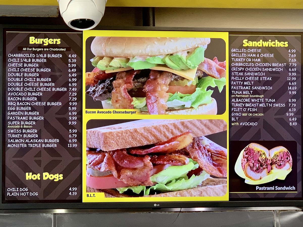 “ Stopped in for my first time last night because I live extremely close. Know they used to be 24 hours prior to the fire but now they are open early and close very late. It’s a traditional to go oriented spot where you can also dine in. They have traditional American and Mexican options and the free parking lot attached which is a real bonus. Pricing is also fair and the menu is large. They are most known for their Chili Cheeseburger so I wanted to try that for my first time. I will say it was seasoned well and the chili has a great taste. I don’t order that often so it was nice trying it again. The patties are not very large, almost the size of In-N-Out but a little larger. We also ordered the BLT with Avocado and overall it was OK because there was not much bacon in it compared to other places that I’ve been to recently. If they would add more bacon and Dijon, it would make it much better. We also ordered the french fries which I would suggest splitting one order because two orders is really a lot of fries and one would really cover enough for two people. ”